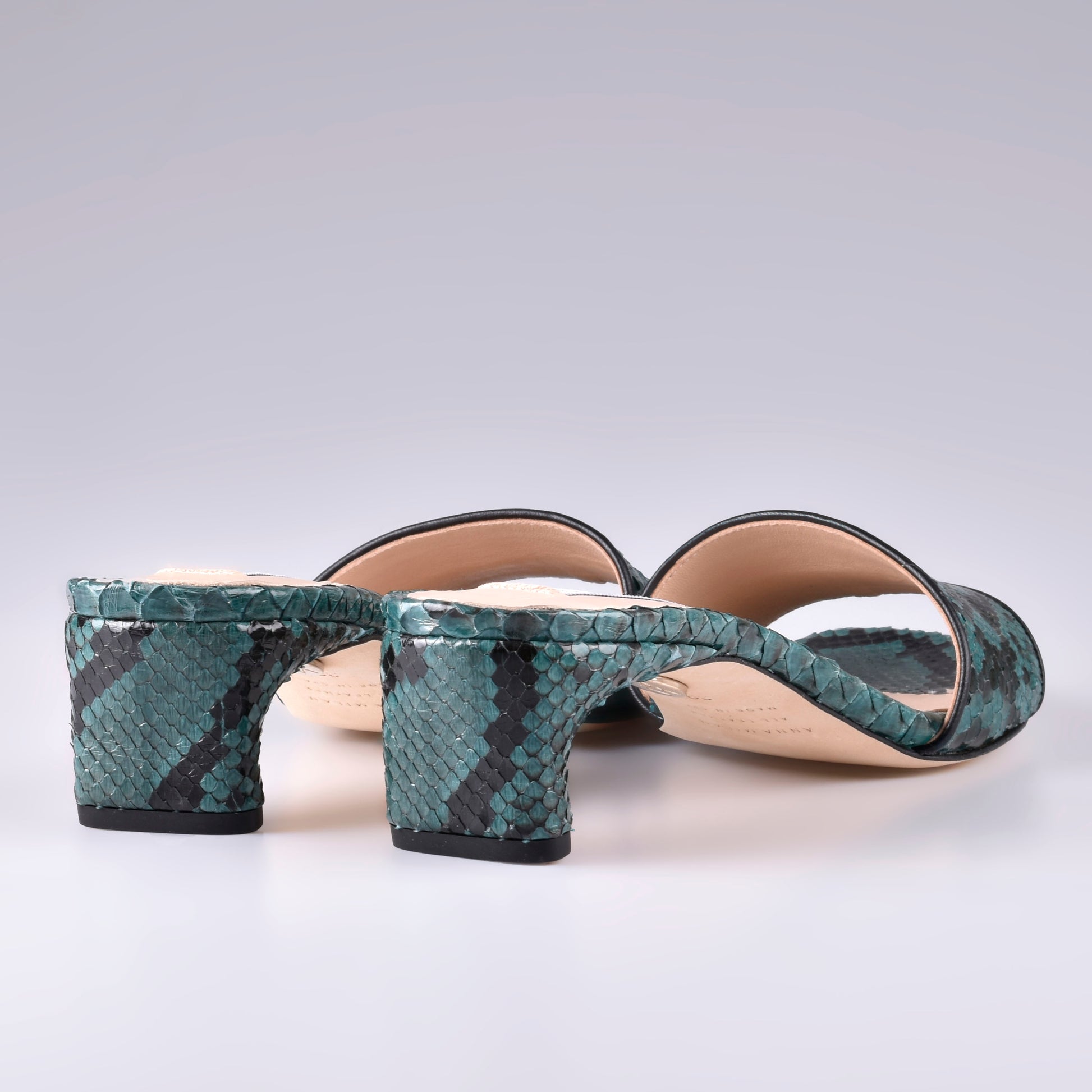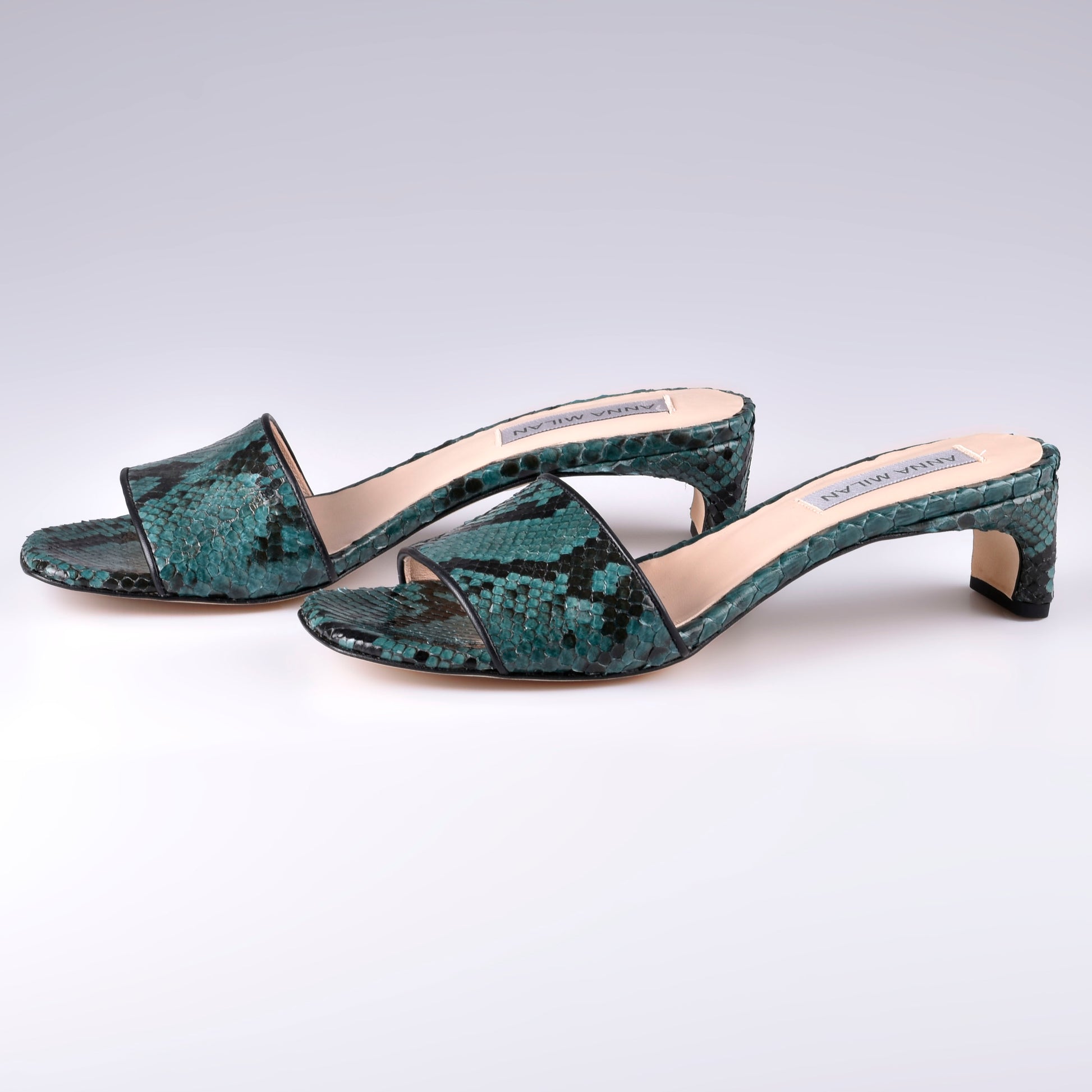 Sandalias de pitón Verde de Edición Limitada serán el centro de atención de tu estilismo. Esta temporada el pitón y tú os vais a llevar todo el protagonismo vayas donde vayas.