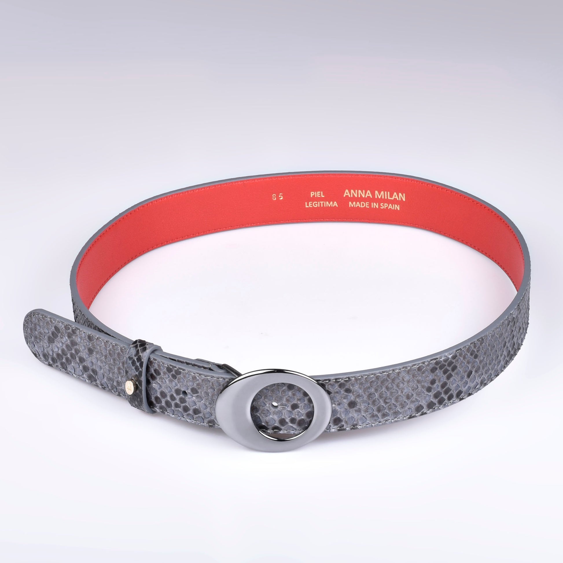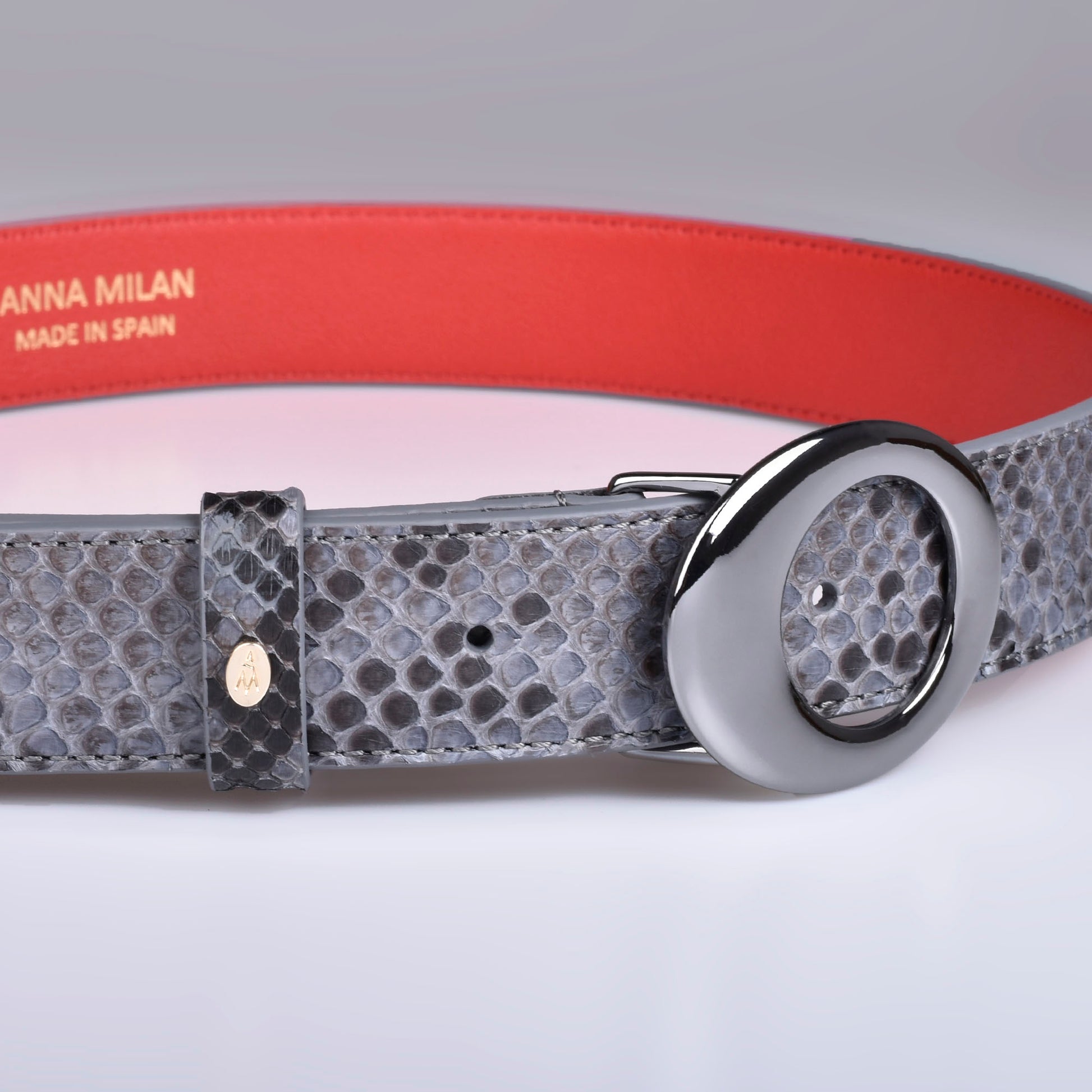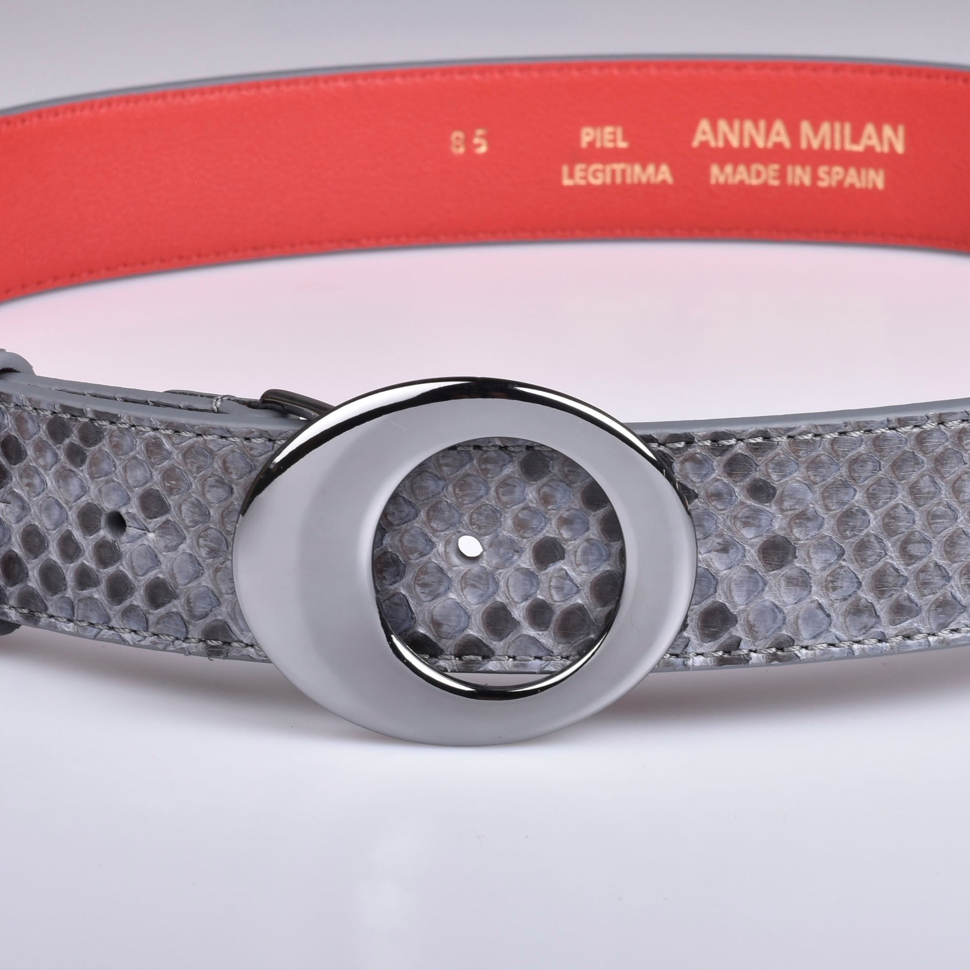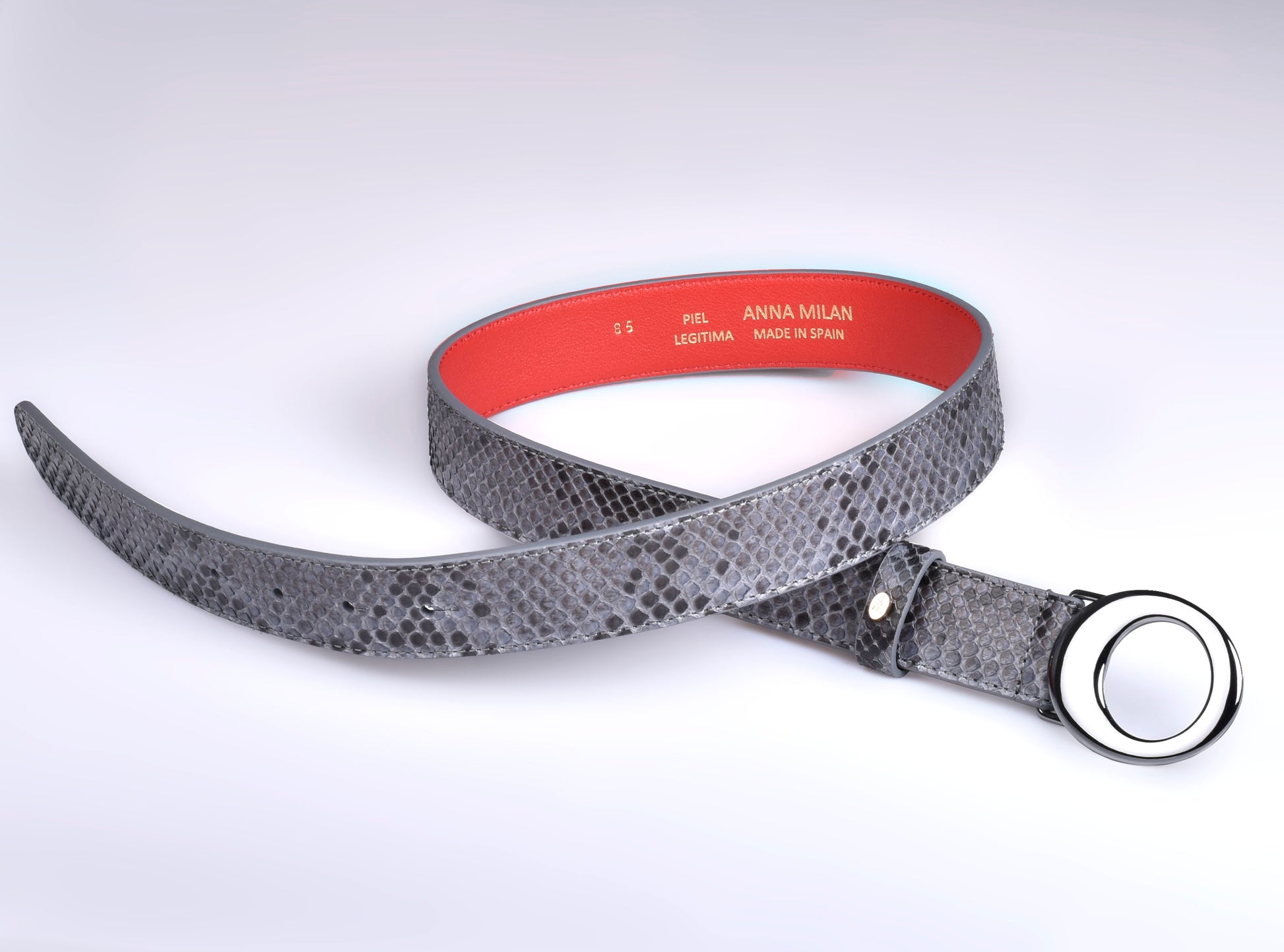 Este é um cinto de couro de píton natural feito inteiramente na Espanha.