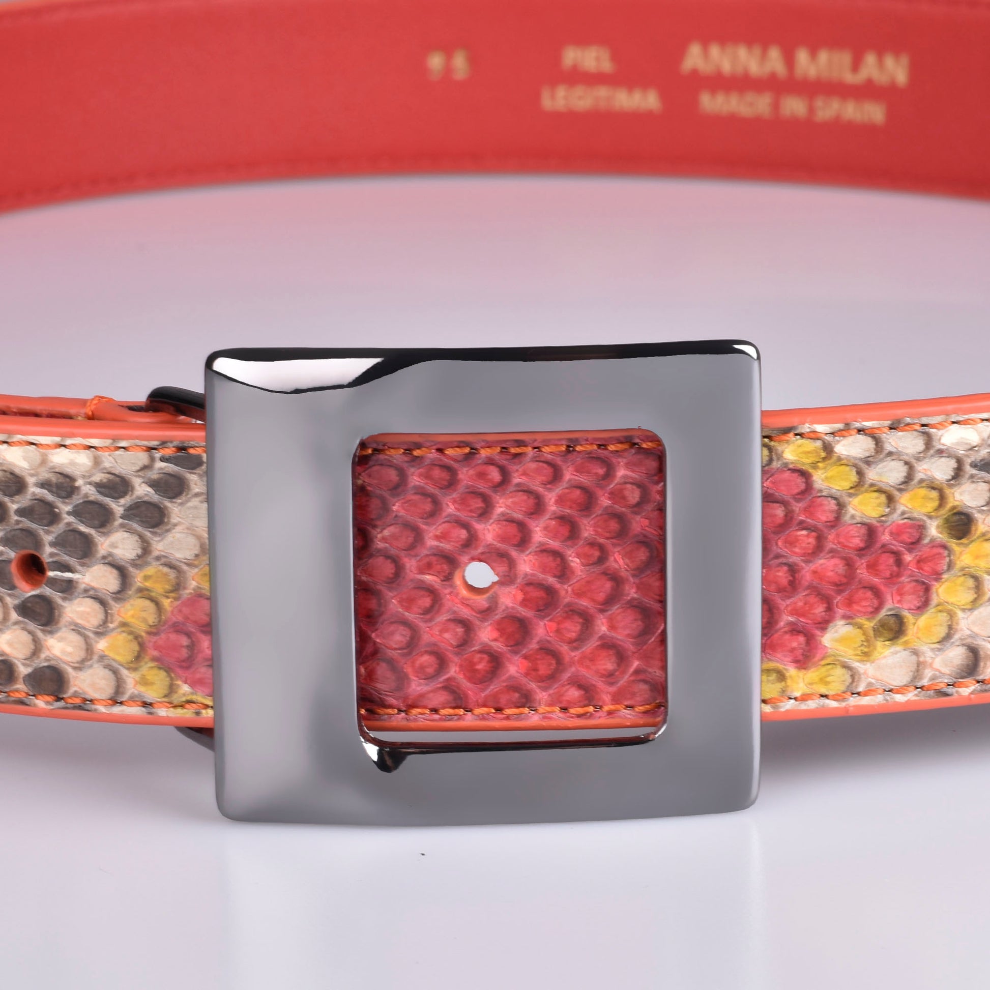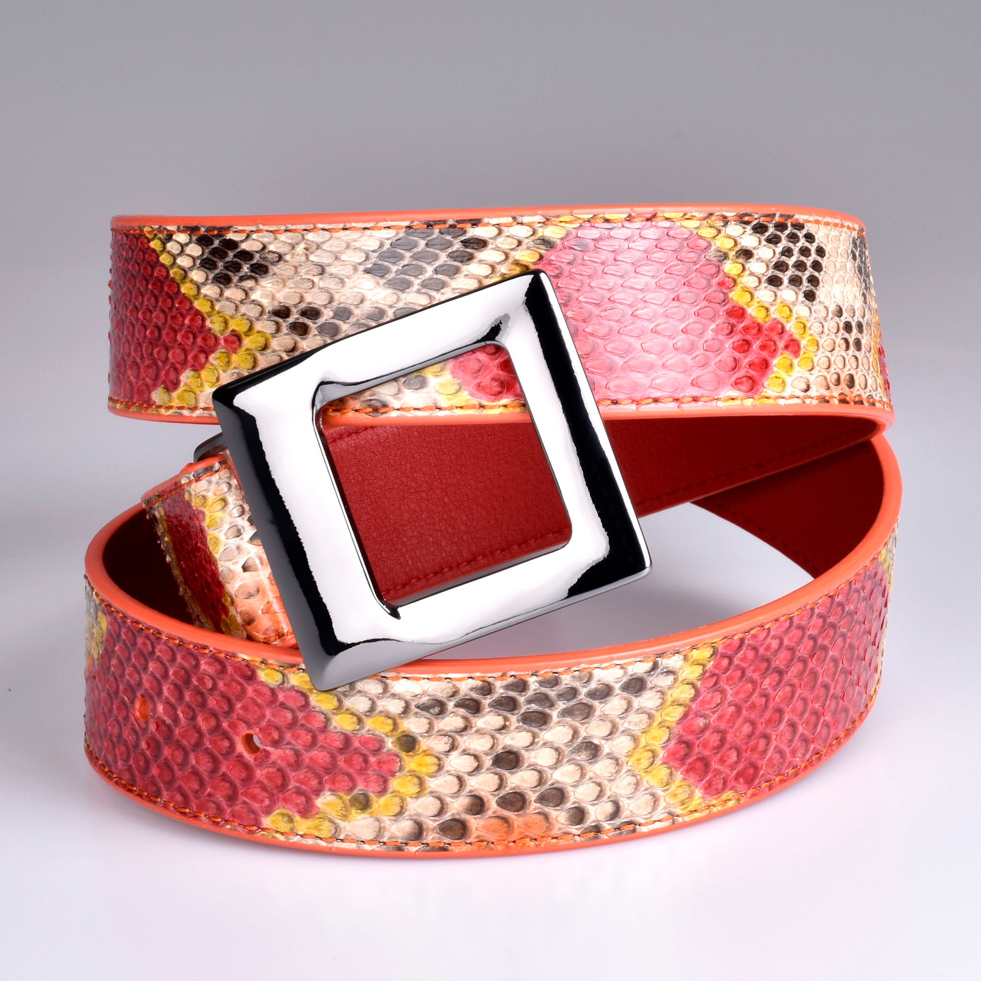 Cinto feminino python laranja e amarelo